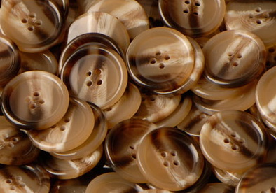 牛角扣,常見高檔西服中最常使用的就是天然牛角扣,一般多使用黑色的水牛角。
